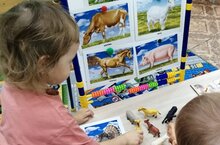 Сегодня в детском саду, дети младшей группы, отправились в деревню, в гости к бабушке с дедушкой. Где они, с удовольствием, закрепляли знания о домашних животных: месте обитания, частях тела, учились находить сходство и различие во внешнем виде. Узнали о том, как человек заботится о домашних животных, какую пользу приносят домашние животные. Пополняли словарный запас детей: учили правильно называть детенышей домашних животных, формировали эмоциональную восприимчивость и отзывчивость.