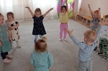 Бүген 3 нче номерлы "Теремкәй"балалар бакчасының иң кечкенә балалар төркемендә шөгылендә балалар бергәләшеп күнегүләр эшләргә өйрәнделәр.Ә соңынан яраткан хәрәкәтле уен "Аюда кунакта"ны уйнадылар.Балалар шөгылләрен бик яраталар. -