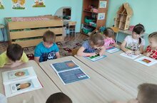 В детском саду номер 3 "Теремок" обучение детей татарскому языку проводится не только во время занятий, но и в режимные моменты. Вот и сегодня воспитатель по обучению татарскому языку Гадельшина Ф. Х. вне занятий встретилась с детьми старшей группы и в увлекательной форме рассказала им сказку Габдуллы Тукая "Шурале". Особенно им интересно было рассматривать иллюстрации к этой сказке выполненные талантливыми художниками Татарстана Д. Митрофановой, Ә. Гарифуллиной, Г. Гилязетдиновой. Так мы воспитываем интерес к культуре и искусству татарского народа.