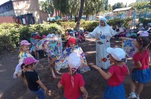 Бүген бакчабызда "Кояш, һава һәм су - безнең дусларыбыз" дигән чара уздырылды. Балаларга кунакка Кояш(тәрбияче Грахова Ольга Сергеевна) килде. Балаларга музыка җитәкчесе Исакова С. Н. табигатьнең кешеләр өчен бар яклап ярдәм итүен, без табигать балалары, шуның өчен, аның кануннарын үтәп яшәү бәрәкәтле икәне турында сөйләде. Балалар саф һавада күңел ачтылар:уйнадылар, җырладылар, биеделәр.