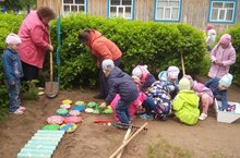 Сегодня в нашем саду прошел средник по благоустройству прилегающих территорий детского сада.