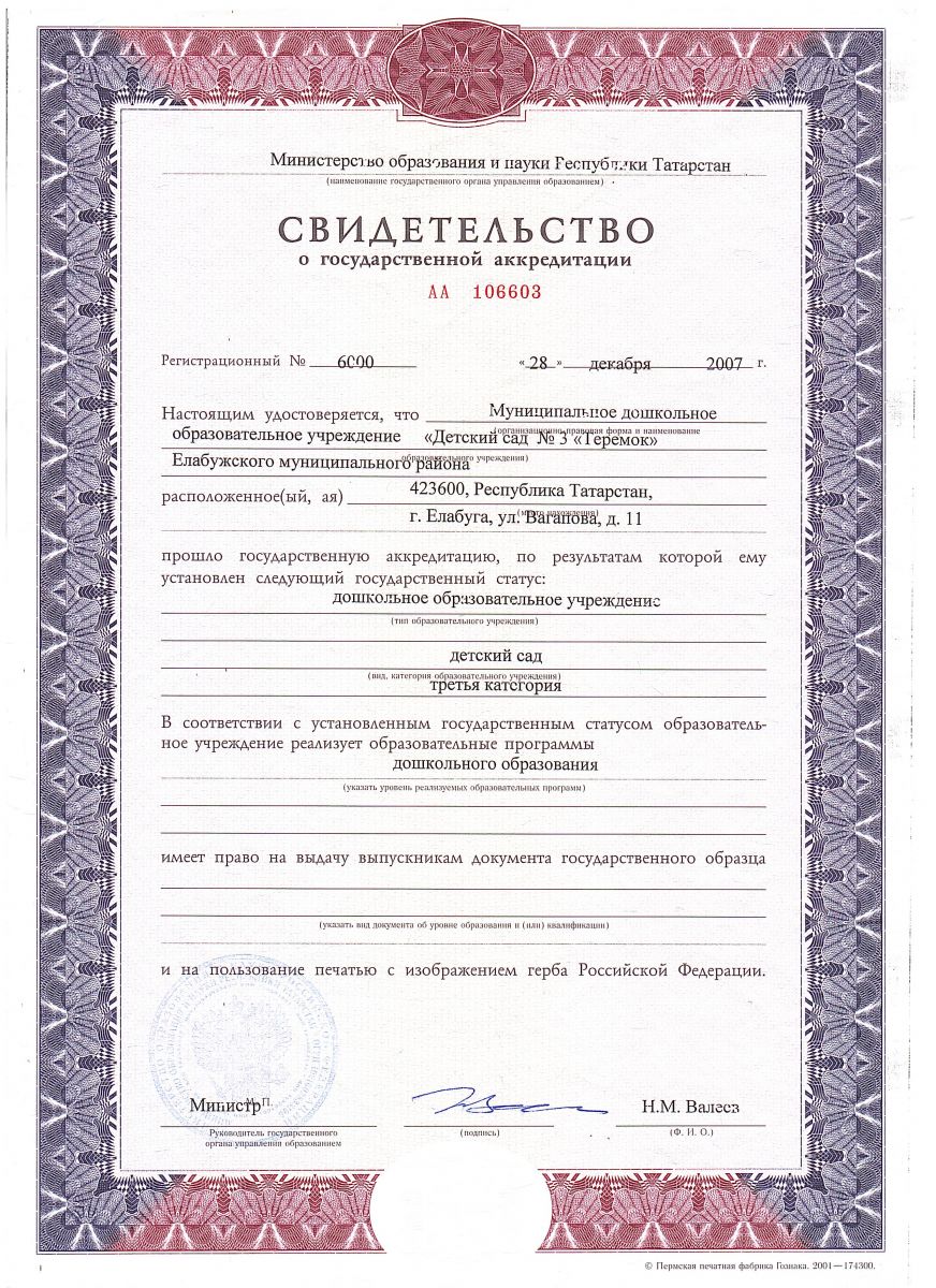 Свидетельство о государственной аккредитации