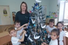 Дети изготовили поделки своими руками под акцией: «Доброе дело в этом году». Осознавая радость и гордость от своих сделанных добрых дел, дети повесили белых лебедей на ёлочку.