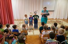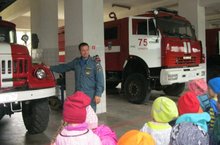 14 сентября воспитанники подготовительной к школе группы №4 побывали с экскурсией в пожарной части г. Елабуга. Целью посещения стало ознакомление с работой службы чрезвычайных ситуаций, с действиями пожарных во время ликвидации пожара, закрепление у детей знаний правил пожарной безопасности, навыков безопасного поведения. Начальник караула Шерстнёв О.А. рассказал ребятам о причинах возникновения пожара, о слаженной работе пожарной команды, предоставил возможность не только осмотреть пожарные машины, но и почувствовать себя в роли пожарного: примерить защитную форму, подержать пожарный рукав, посидеть всем детям в кабине автомобиля. Старший инспектор Соборнов В.В. провел маленьких экскурсантов по этажам, и показал, как незамедлительно реагирует на звонки диспетчерская служба; как обучаются в учебных кабинетах; в тренажёрном зале, где пожарная команда занимается физической подготовкой, продемонстрировал спортивные снаряды и тренажёры. В Уголке Славы он рассказал о спортивных и трудовых успехах своих товарищей, подтверждая показом многочисленных заслуженных грамот, дипломов, вымпелов, кубков. В заключении он произнёс свой девиз «Жить – Родине служить!». Эта экскурсия произвела на ребят неизгладимые впечатления и многие решили, когда вырастут, обязательно пополнят ряды экипажей пожарной команды и будут всегда помогать в чрезвычайных ситуациях, приносить пользу людям, а значит своей Родине.