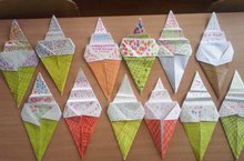 Нечем занять ребенка? Научите его складывать простые оригами из бумаги. Это не только заинтересует его, но и разовьет мелкую моторику пальцев, научит терпению и внимательности, познакомит с окружающим миром. Дети очень любят делать что-то своими руками, да и не только дети, всегда приятно создать что-то, чтобы потом можно было с гордостью сказать: “Я сделал это сам”. Эту аппетитную поделку в виде «МОРОЖЕНОГО» выполнили дети группы № 12 на занятии «Волшебный мир оригами» по теме «Продукты питания».