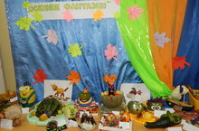Все неделю в детском саду проходит выставка семейного творчества из овощей и природного материала "Осенние фантазии". Дети и родители проявили свою фантазию и осенние дары превратились в сказочных героев и зверушек.