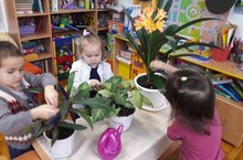Ребята средней группы №2 с удовольствием трудятся в центре ознакомления с окружающим миром, где круглый год растут красивые комнатные растения. 2 нче урта төркем балалары әйләнә-тирә дөнья белән танышу үзәгендә бик теләп эшлиләр.