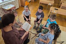 14 марта в средней группе №5 организовали чтение художественной литературы военной тематики. В стихотворении Агнии Барто «Мой брат уходит на войну» поэтесса описывает чувства мальчика, который понимает, что старший будет биться за двоих. В стихотворении «Я с войны» рассказывается о мальчике, которого война оставила без семьи, но которого взяла на воспитание другая семья.