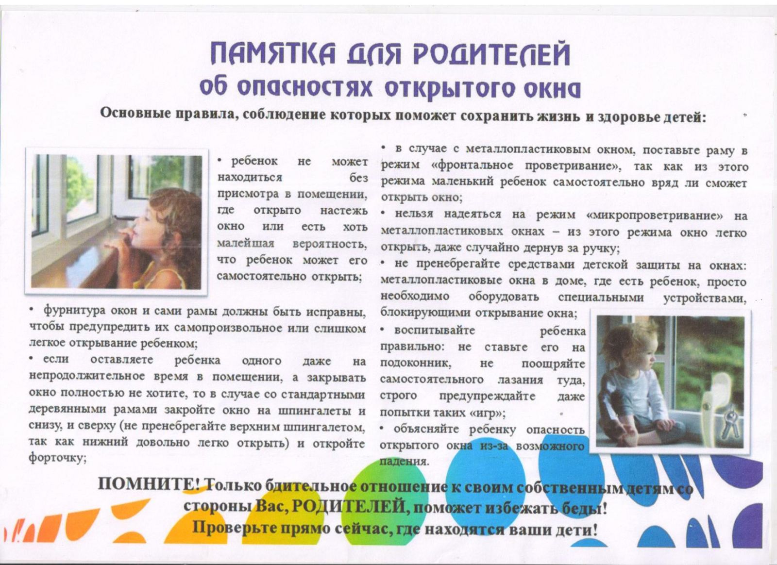 Памятка для родителей об опасности открытого окна
