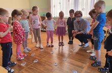 В средней группе 5 провели квест-игру на тему "Мы зверят не обижаем, зайцу вместе помогаем!". Ребята вместе с воспитателем шли по следам волка, который обидел зайчика и украл у него корзинку с овощами. Детям очень понравилась квест-игра. Они с удовольствием выполняли задания на каждом этапе игры, обрадовались когда в конце нашли корзину, ребята смогли помочь зайчику.
