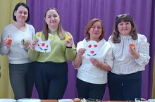 Педагоглар Э.Р.Щербакова һәм Р.Т. Агләмова татар теле тәрбиячеләре өчен ММО кысаларында, бәрәңге эзләре белән мастер-класс үткәрделәр. Бу традицион булмаган рәсем ясау методикасы педагоглар тарафыннан мәктәпкәчә яшьтәге балаларга милли орнамент белән таныштырырга булыша.