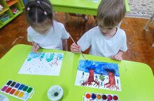 Воспитанники подготовительной группы детского сада погрузились в творчество, создавая зимние пейзажи красками. Занятие помогло детям развить художественные способности и почувствовать волшебство зимней природы.