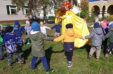 Сегодняшняя прогулка у воспитанников прошла необычно интересно- к ним в гости пришла Осень. Ребята были очень рады поиграть, потанцевать, повеселиться с ней.