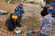 Бүген урта группа тәрбияләнүчеләре яфрак җыюда һәм юлларны себерүдә катнаштылар: балаларның һәрберсе әлеге эштә үз өлешен кертте.
