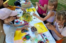 Сегодня в Георгиевском парке педагоги нашего детского сада провели творческие мастер- классы по прикладным направлениям. По итогу мероприятия участники забрали на память закладки и браслеты из цветов и сухоцветов, так же сделали памятные фотографии в рамках из ромашек- символа семьи.