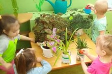В нашем детском саду детям с младшего возраста прививают любовь и заботу о природе, растениях. Дети наблюдают за растениями, запоминают их названия. Комнатные растения не только украшают помещение, но и выполняют полезные функции: очищают воздух от токсинов и пыли, повышают уровень влажности в помещениях. Воспитанникам детского сада нравится ухаживать за ними: поливать, протирать крупные растения влажной тряпкой, рыхлить почву, опрыскивать. Такие элементарные трудовые поручения воспитывают интерес к комнатным растениям, любовь к труду, прививают заботливое и гуманное отношение к природе.
