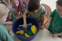 Очень познавательно и экспериментально прошло занятие по окружающему миру в средней группе. Дети познакомились со свойствами пластмассы: потрогали на ощупь, измеряли весь и узнали, что пластмасса не тонет в воде.