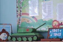 Мәктәпкәчә яшьтәге балаларда патриотизм, үз ватаныңа мәхәббәт һәм Бөек Ватан сугышында катнашучыларга карата хөрмәт хисен формалаштыра башларга кирәк кечкенә вакыттан ук. Шул уңайдан без төркемебездә балалар өчен тематик папкалар әзерләдек. Ата-аналар өчен Җиңү көненә багышланган рәсемнәр һәм шигырьләр белән консультацияләр ясап куйдык. "Җиңү көне" нә багышланган кул эшләнмәләре күргәзмәсе оештырдык.Ә бу истәлекле "Җиңү Көне"н традицион булмаган рәсем ясау техникасында эшләнгән "Бәйрәм салюты" коллектив эше белән төгәлләдек.