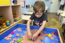 Забота о воспитании здорового ребёнка является приоритетным направлением в работе любого дошкольного учреждения. Игра с кинетическим песком на индивидуальных занятиях– это своеобразная само терапия ребёнка с помощью психолога. Ребёнок является хозяином в ящике с песком, у него есть возможность изменения сюжета, событий, взаимоотношений. Поскольку игра происходит в контексте сказочного мира, ребёнку предоставляется возможность изменения дискомфортной для него ситуации. Он учится самостоятельно преодолевать трудности. Игра с кинетическим песком обладает психотерапевтическим эффектом, помогая ребёнку избавиться от страхов, застенчивости, конфликтности в общении и многих других проблем. Благодаря занятиям с данным материалом у малышей развивается тактильная чувствительность и воображение.
