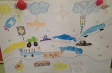 Очень важно изучить правила дорожного движения в детском саду. Дети не только изучают правила дорожного движения, но и учатся правильно вести себя на улице и дороге. Дети 9 группы закрепили свои знания о видах транспорта через создание панно. Они приклеивали транспорт сделанное своими руками к ватману соответственно пейзажу. Коллективная работа - очень интересное занятие для детей. Вечером дети с гордостью рассказывали родителям о своей работе.