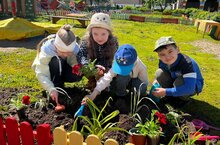 Сегодня дети старшей группы совместно с воспитателем посадили рассаду цветов на клумбы. Саженцы рассады ребята осторожно поместили в углубление в земле, засыпали лунки землёй и уплотнили почву. Во время посадки каждый смог принять участие в работе: выкопать лунку, полить водой из лейки, посадить цветок.