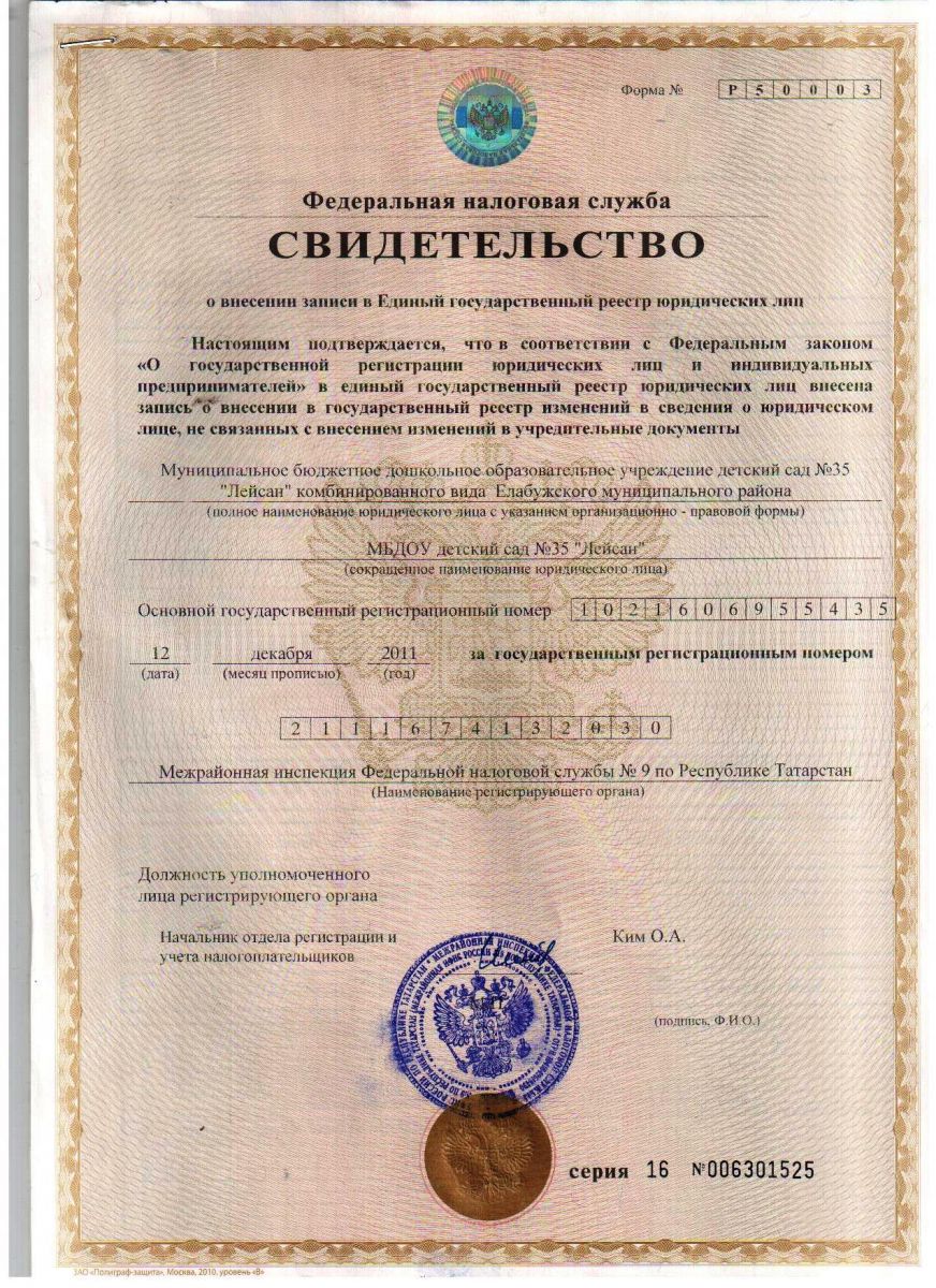 Муниципальное бюджетное дошкольное образовательное учреждение детский сад №35 «Лейсан» комбинированного вида Елабужского муниципального района/Алабуга муниципаль районы 35 нче "Ләйсән" катнаш төрдәге балалар бакчасы муниципаль бюджет мәктәпкәчә белем бирү учреждениесе