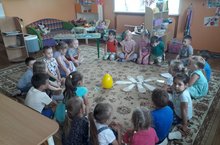 Бүген безнең бакчада иң кечкенә балалар өчен Көзге күңел ачу булды. Аларга кунакка аю, әтәч, тычкан, бака һәм, әлбәттә, көз гүзәле килде. Балалар җырладылар, биеделәр , шигырьләр сөйләделәр, кунаклар белән уйнадылар һәм күңел ачтылар. Бәйрәм бик матур һәм кызыклы булды, балаларыбызнын ислэрендэ калырлык булды. -