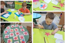 Дети младшей группы изготовили открытку "Звезда Победы" к приближающемуся празднику "День Победы".