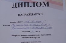 Бүген "Мәктәпкәчә яшьтәге балалар" категориясендә йөзү буенча шәһәр ярышларында абсолют җиңүчеләр-36нчы "Очкынкай" балалар бакчасында тәрбияләнүчеләр Буханцев Олег һәм Крошнякова Варвара (йөзү буенча инструктор Ахкамеева Л. Г.)! Без җиңүчеләрне котлыйбыз, афәрин,яңа җиңүләр телибез!