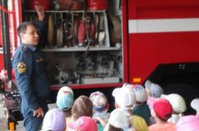 Сегодня воспитанники средней группы №10 с воспитателем Латиповой И.Р. совершили экскурсию в пожарную часть МЧС г. Елабуги. Дети узнали как себя вести и как соблюдать правила безопасности при пожаре, чего нельзя делать для возникновения пожара. Дошкольники познакомились с профессией пожарного - спасателя, воочию увидели тренировочную учебу тушения пожара и конечно с удовольствием осмотрели пожарную машину.