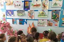 Патриотик тәрбия бирү кысаларында кече төркем балалары "Беркем дә онытылмый, бернәрсә дә онытылмый!" дигән балалар иҗаты күргәзмәсе белән таныштылар.