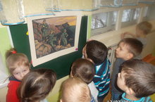 - Все ворастные группы детского сада на занятиях по патриотическому воспитанию,рассматривалииллюстрации,картины с фрагментами военных лет.