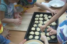 “Я пеку, пеку, пеку...” Воспитанники 6 группы из сдобного теста лепили угощение для кукол. Перед лепкой воспитатель показал разнообразие форм мучных изделей: печенье (круг), колобок ( шар), бублики (кольцо). Дети с большим интересом использовали усвоенные приемы. Готовые для выпечки изделия отнесли на кухню. Дети угостили кукол и сами с большым удовольствием пили чай с булочками.Интересную образовательную деятельность провела воспитатель группы №6 Мирхайдарова З.З.