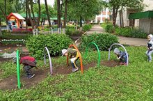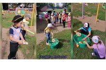 Балалар урамда җыештырдылар, чәчәкләргэ су сибтеләр, туфрак йомшарттылар, хәрәкәтчән уеннар уйнадылар: «Мышеловка», «Уз чәчәгеңне тап».