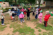 На прогулке мы с детьми организуем увлекательные путешествия: на корабле, на машине отправляемся в деревню, в лес или на ферму. Во время путешествия дети знакомятся с окружающим миром, у них развивается воображение. У детей воспитывается желание участвовать в совместных играх.