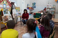 Нәниләр “Йомры икмәк” әкиятен тыңлыйДети первой младшей группы слушают сказку “Колобок” -