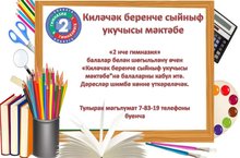 2 нче гимназия "Киләчәк беренче сыйныф укучысы мәктәбе"нә балаларны кабул итә. Дәресләр Тугаров урамы, 6 нчы йорт адресы буенча һәр шимбә көнне үткәрелә. Тулырак мәгълүмат 7-83-19 телефоны буенча.