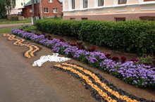 Каждый год наша гимназия славилась своим пришкольным участком. Так и в этом году все цветники участка были посвящены одной теме "Салют Победы". Все цветники получились очень красочными и цветными, а перед входом в гимназию учителями и учениками был сделан рисунок из камней в виде георгиевской ленты и голубя, который символизирует мир.