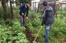 Сегодня учащиеся 8 класса вместе с классным руководителем побывали в гостях у ветерана тыла Кусакина В.В., помогли в уборке огорода, окучили картофель, убрали сорняки.