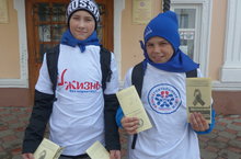 Члены отряда «Самостоятельные дети» (SMS-дети) раздавали листовки, агитируя за здоровый образ жизни.