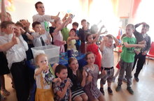 Как один день пролетела смена в пришкольном лагере "Кояшкай-Солнышко". Пришла пора расставаться. И вот в последний день ребята устроили грандиозный концерт, диджеем которого была ученица первого класса Аня, а после концерта - дискотека.Лагерь пришкольный на год прощай,Нас позабыть не обещай!Очень уж грустно с тобой расставанье.До встречи, наш лагерь!Пока! До свидания!!! -