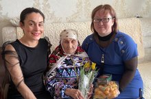 Сегодня учащиеся нашей гимназии поздравили свою прабабушку - ветерана Великой Отечественной войны Магсумову Хидаю Хабибрахмановну с Днем рождения! Они подарили ей открытку, гостинцы и пожелали ей крепкого здоровья и долгих лет жизни!