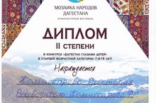 Поздравляем Комиссарову Викторию, ученицу 10 класса, которая получила диплом II степени в конкурсе "Дагестан глазами детей" в старшей категории (14-16 лет). Руководитель Комиссарова Ф.Г.. Молодцы!