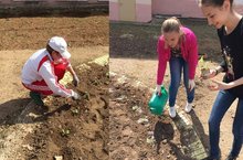 С сегодняшнего дня начались работы по озеленению территории гимназии, а также клумбы в детском парке "Чебурашка".