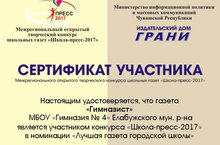 Газета "Гимназист" приняла участие в межрегиональном открытом творческом конкурсе "Школа-пресс-2017" в номинации "Лучшая газета городской школы".