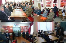 12 ноября в гимназии были гости - лекторская группа Совета ветеранов города. Учащиеся встретили ветеранов в обновленном музее гимназии и показали визитную карточку, отрывок экскурсии по экспозиции музея, посвященной Великой Отечественной войне. Руководитель музея Чегодаева Елена Геннадьевна рассказала о планах по работе с экспозицией: 1. НГДУ "Прикамнефть" и сотрудничество с гимназией №4; 2. История гимназии. Вторым часом ветераны встречались с учащимися по классам. Дети с интересом слушали о войне, ее героях, о трудностях тружеников тыла в войну, о сдаче норм ГТО в то время, о необходимости подготовки к службе в рядах Вооруженных сил РФ, о необходимости интересоваться непростой политикой и обстановкой в нашей стране и за рубежом. Ветераны были приятно удивлены выступлению хора, хорошей подготовке учащихся и были благодарны за радушный прием.