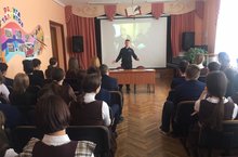 В гимназии прошла беседа со старшеклассниками с приглашением инспектора ОДН Астафьева М.А. по профилактике и предупреждению правонарушений, асоциального поведения несовершеннолетних, противодействию распространения в подростковой среде криминальной субкультуры. Инспектор по делам несовершеннолетних настоятельно рекомендовал соблюдать правила поведения на улице, в общественных местах, местах массового отдыха, не забывать о соблюдении комендантского часа. Он напомнила школьникам о вреде употребления спиртных напитков и табака, а также объяснил, чем опасны эти пагубные привычки. Старшеклассники посмотрели и обсудили фильм, инспектор ответил на вопросы обучающихся.Гимназиябездә балигъ булмаганнар эшләре буенча инспекторы Астафьева М.А. катнашы белән әңгәмә узды. Бу әңгәмәдә яшүсмерләр hәм балигъ булмаганнар арасында криминаль субкультураны, тәртип бозуга китерүче сәбәпләрне булдырмау максатыннан чыгып уздырылды. Балигъ булмаганнар эшләре буенча инспектор бик катгый рәвештә урамда йөрү, җәмгыять урыннарында үз-үзеңне тоту, комендант сәгатен үтәү кагыйдәләрен бозмаска киңәш итте. Ул, шулай ук,укучыларга тәмәке тартмаска, спиртлы эчемлекләр кулланмаска кирәклегенә ишарә ясады. Укучыларыбыз бу темаларга кагылышлы документаль фильм карадылар, аның буенча әңгәмә оештырдылар, ә инспектор укучыларны кызыксындырган сорауларга җавап бирде. -