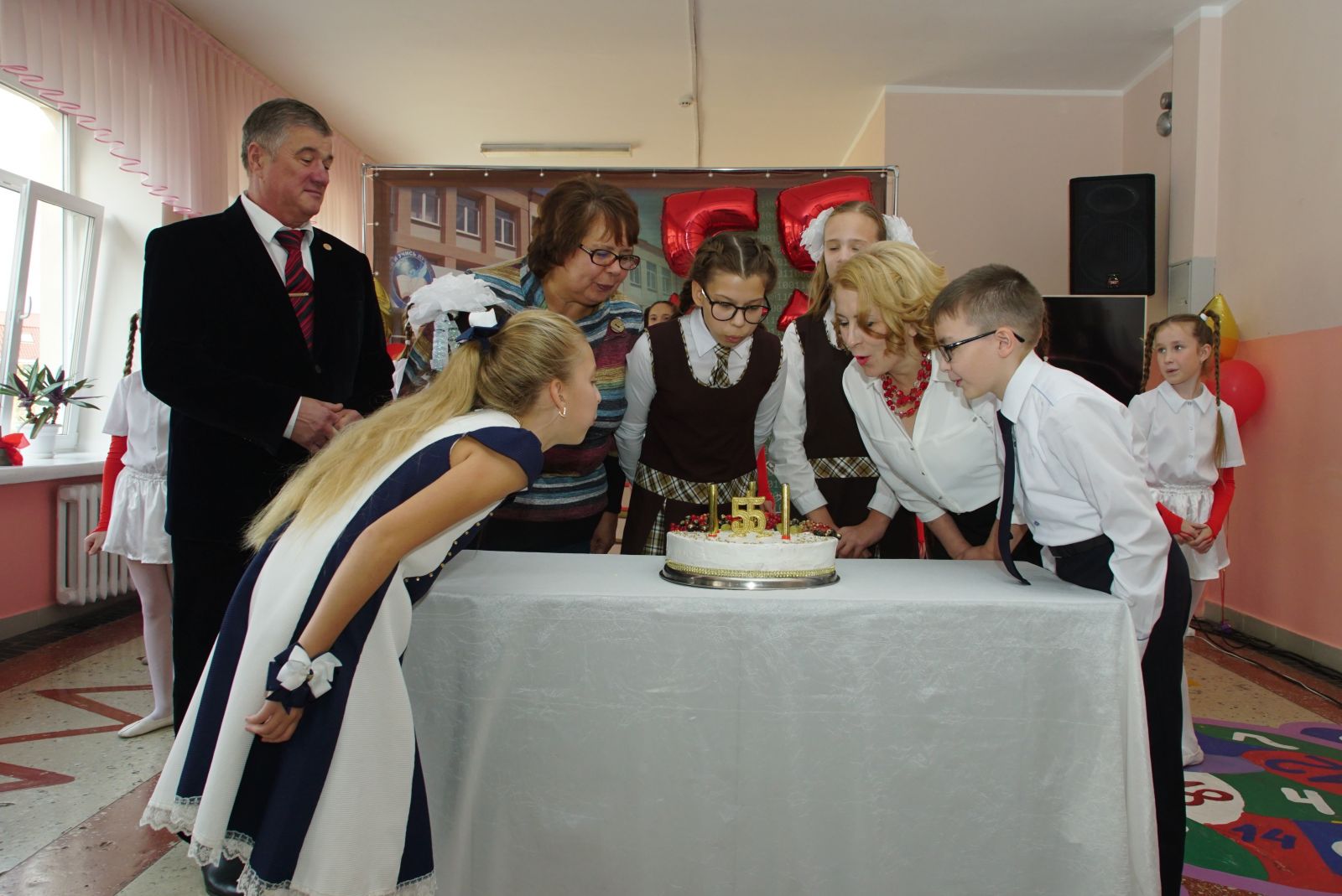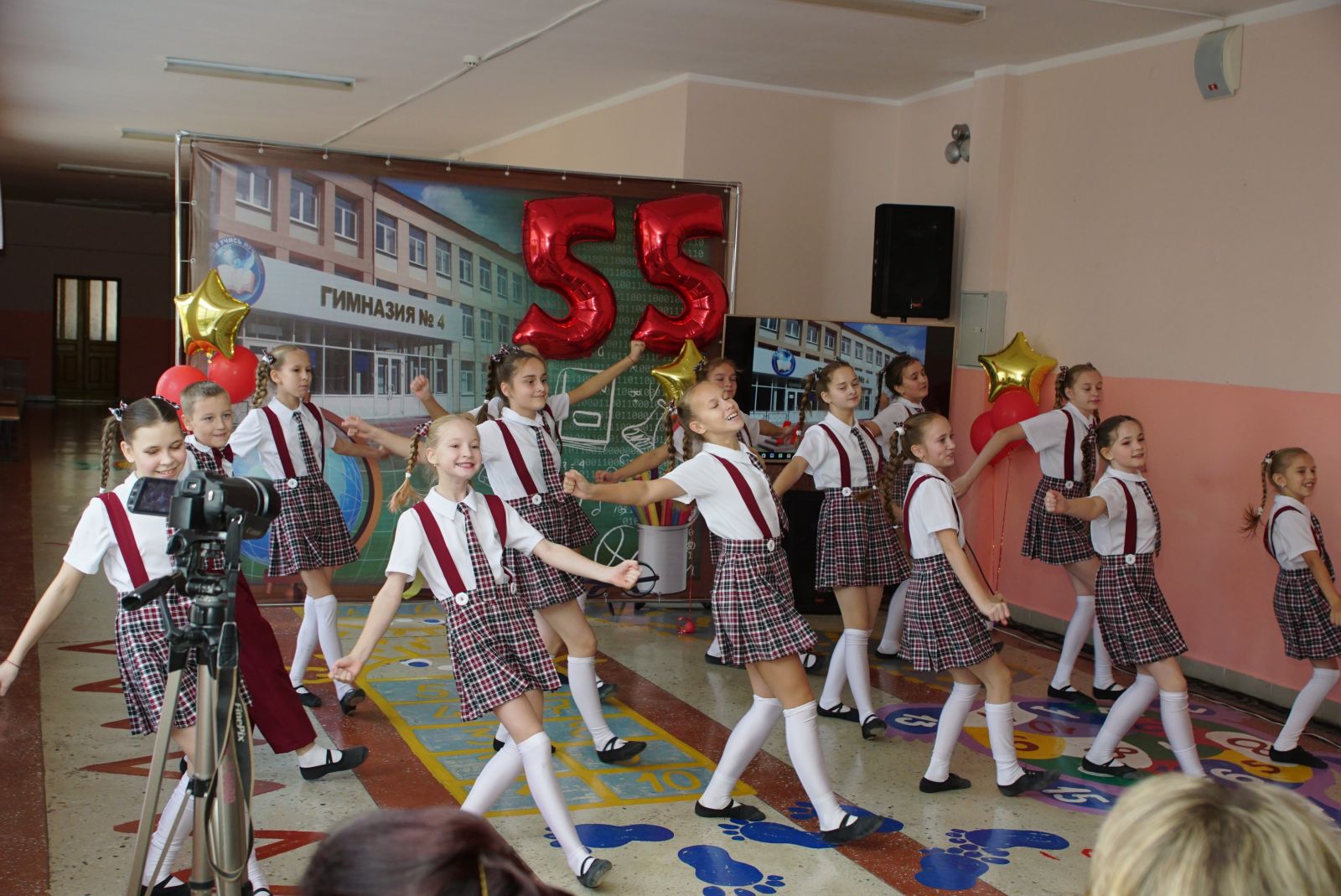 5 октября МБОУ «Гимназия №4» отметила свой 55-летний юбилей! С днем рождения старейшее учебное заведение города пришли поздравить представители администрации Елабужского муниципального района, подшефного предприятия НГДУ «Прикамнефть», председатель совета профсоюзных организаций, ветераны педагогического труда, выпускники разных лет, родители обучающихся.К юбилейной дате в гимназии дружно готовился весь коллектив: акция «55 пятерок к юбилею для обучающихся 2-11 классов»- (50 обучающихся стали победителями), яркие фотозоны, юбилейный выпуск школьной газеты «Гимназист», видеоролик «Юбилейный репортаж», памятные подарки, сделанные руками детей, яркие творческие номера от работающего педагогического коллектива, школьного хора «Радуга», хореографического коллектива «Карамель», победителей школьного КВН.Приятно было получить творческие поздравления от педагогов ДМШ №1и ДМШ№2.Листались страницы 55-летней истории и было очень отрадно, что на протяжении всего периода работы нашей школы традиции не только сохранялись, но и приумножались. Об этом говорили все- и почетные гости, и ветераны, и директор гимназии Е.Г. Чегодаева.Традиционно был дан школьный звонок первоклассниками 1964 года, который пригласил на сцену выпускников разных лет.Много теплых слов было сказано в адрес ветеранов педагогического труда, работающего коллектива. Ярким праздничным аккордом стал юбилейный торт, свечи которого задули директор гимназии, первоклассники 1964 года и победители акции «55 пятерок к юбилею» под девиз 25-летней давности «Нет школы лучше в мире, чем гимназия №4!»МБББУ 4 нче гимназия 5 нче октябрь көнне үзенең 55 еллык юбилеен бәйрәм итте! Гимназиябезне шундый олуг бәйрәме белән тәбрик итәргә дип, Алабуга муниципаль районы администрациясе, шефларыбыз НГДУ «Прикамнефть» вәкилләре,профсоюз оешмалары советы рәисе, педагогик хезмәт ветераннары, төрле ел чыгарылыш укучылары, укучыларыбызның ата-аналары килде.Юбилейга гимназиябезнең бар коллективы да бердәм әзерләнде: “2-11 нче сыйныф укучылары өчен гимназиябез юбилеена 55 бишле!” акциясе (50 укучы җиңүче булды), якты фотозоналар, “Гимназист”газетасының юбилей чыгыш номеры, “Юбилей репортажы” видеоролигы, укучыларның үз куллары белән ясалган истәлекле бүләкләр, эшләп торучы коллектив вәкилләре, мәктәп хоры “Салават күпере”, “Карамель” хореографик коллектив, мәктәп КВНы җиңүчеләре башкаруында иҗади чыгышлар килгән кунакларга тәкъдим ителде.Беренче hәм икенче номерлы БММ коллективы башкаруында иҗади тәбрикләү алу да күңелгә бик ятышлы булды.Шушы еллар дәверендә мәктәптә яшәп килгән матур гадәтләрнең сакланып кына калмыйча, тагын да киң колач алуын күрү бик куанычлы иде. Бу турыда гимназиябез директоры Е.Г.Чегодаева да, ветераннарыбыз да, хөрмәтле кунаклар да бик куанып, теләп искә алды.Гадәттәгечә, 1964 нче елгы беренче сыйныф укучылары өчен кыңгырау шалтыравы төрле ел чыгарылыш укучыларын сәхнәгә дәште.Педагогик хезмәт ветераннары hәм әлегесе көндә эшләп торучы коллектив адресына атап, бик күп җылы сүзләр әйтелде , якты теләкләр теләнде. Иң якты бәйрәм аккорды юбилей торты булды. Аның шәмнәрен бердәм сүндерүчеләр 1964 нче елда гимназиябез бусагасына беренче тапкыр аяк баскан укучылар, “Юбилейга 55 бишле” акциясендә җиңүчеләр, гимназиябез директоры булды. Бу вакытта бердәм коллективны