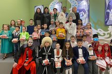 Праздник собрал детей и взрослых разных национальностей. Участники нарядились в национальные костюмы, звучали поздравления, стихи и песни на разных языках. В красивом и уютном зале дети окунулись в волшебный мир сказки, для них было организовано театрализованное представление. Традиционно вокруг елки водили хоровод с Дедом Морозом и Снегурочкой.