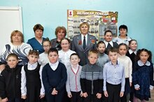 Мәктәптә ветераннар төркеме вәкилләре белән очрашу булды .Ушакова Л.В. һәм Белов Н.В. укучылар белән Батырлык дәресләре үткәрделәр, совет халкының Бөек Ватан сугышы елларында фронтта һәм тылда күрсәткән батырлыклары турында сөйләделәр.